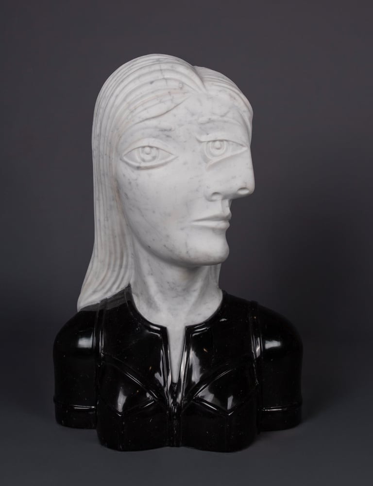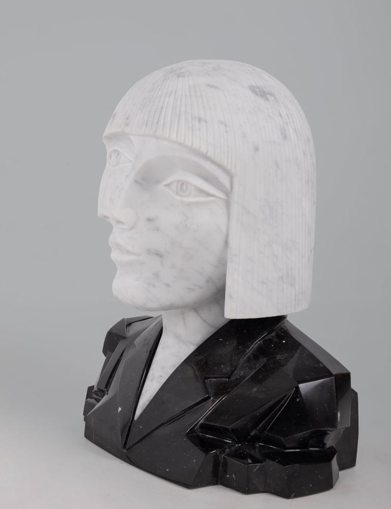 His work focuses on hand-carved marble, a material with which he establishes a profound relationship, enriched by his own visual language known as retrofuturist art: a fusion of the traditional sculptural canon with contemporary codes drawn from popular culture, cinema, rock music, and personalized universes.